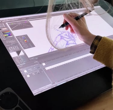 L’animation 2D regroupe l’ensemble des techniques d’animation en deux dimensions, qu’elles soient réalisées à partir de dessins, de formes graphiques ou d’éléments animés numériquement. L’animation image par image en fait partie : elle correspond à une approche plus précise et plus artisanale, où chaque mouvement est dessiné manuellement, image après image. En pratique, ces deux notions sont très proches ; l’animation 2D est un cadre plus large, tandis que l’animation image par image désigne une méthode de fabrication spécifique, privilégiée pour son expressivité, sa fluidité et son caractère sur mesure.