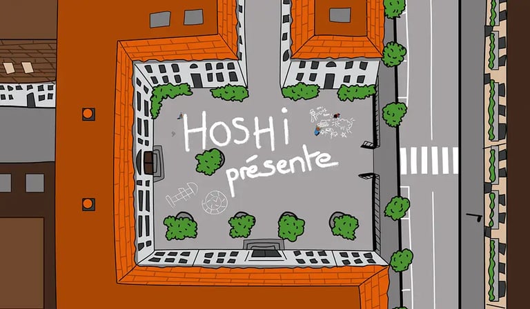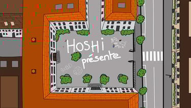 Cette vidéo est basée sur des dessins de personnages originaux créés par l'artiste. Nous avons retravaillé la direction artistique et réalisé l'animation dans notre studio parisien. Un point clé : l'univers visuel prolonge les dessins spontanés de HOSHI, des traits "vrais" qui gardent une forme d'innocence tout en portant des images du monde adulte (peurs, violences, fin du monde). Cette base graphique donne au clip une signature très personnelle — nous ne nous contentons pas d'illustrer la chanson, nous prolongeons une sensibilité artistique déjà présente.