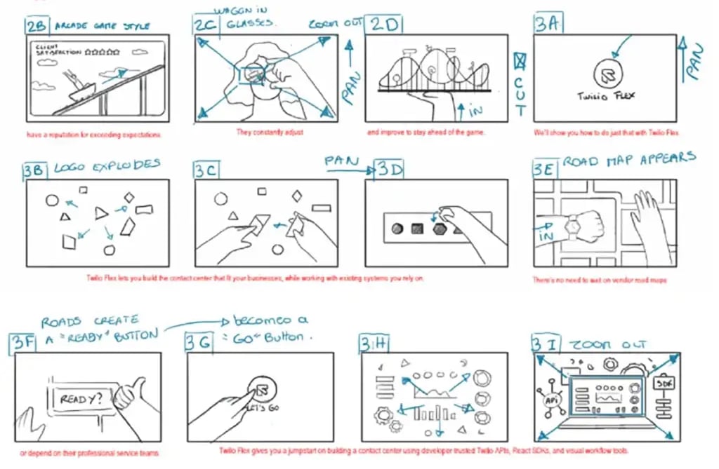 Our 2D animation expertise, combined with our motion graphics services, allowed us to deliver a video that not only introduces Twilio Flex but also captivates its audience from the first frame. Below is a frame from our storyboard, showcasing the visual foundation that guided the entire animation process.